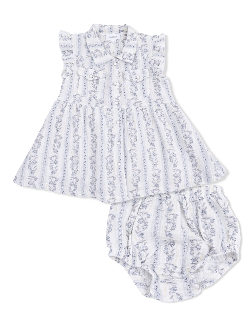 Get little ones ready for playful adventures with our Western Pearl Snap Dress & Bloomer! Made from soft, breathable organic cotton muslin, this lightweight dress is gentle on delicate skin and perfect for all-day comfort. The coordinating bloomer ensures coverage and ease of movement, making this set ideal for twirls, playdates, or casual outings.
