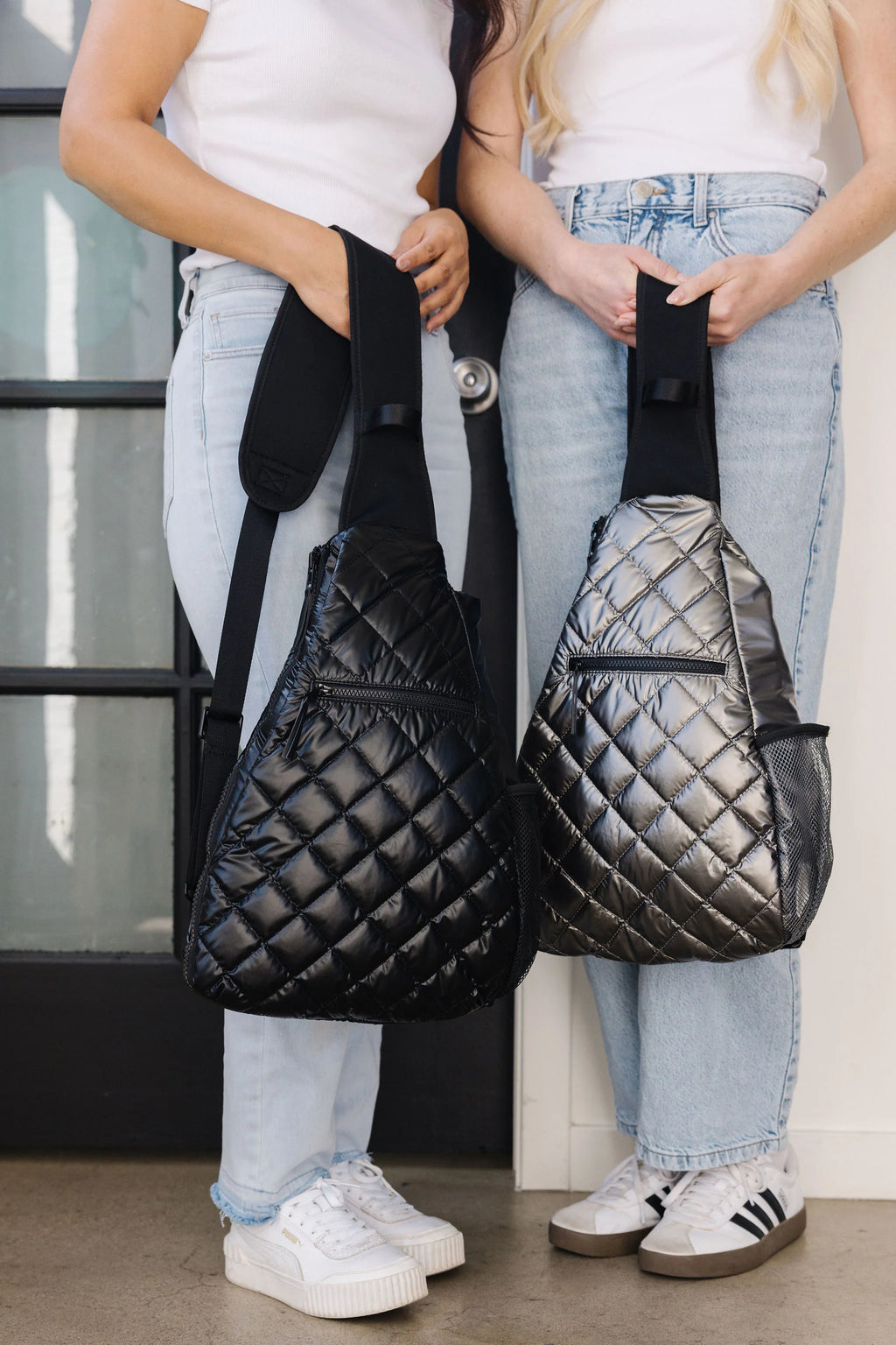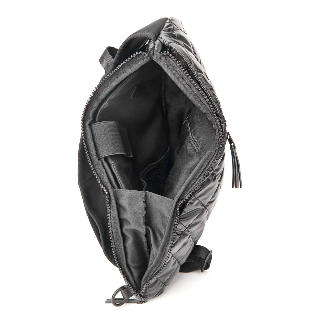 Elegant and functional, the fashionable Veranda Sling Backpack features multiple hidden exterior pockets, an adjustable padded crossbody strap with zip pocket, and a handy exterior water bottle holder. This bag was built to support your active lifestyle with elegance, style and utility.