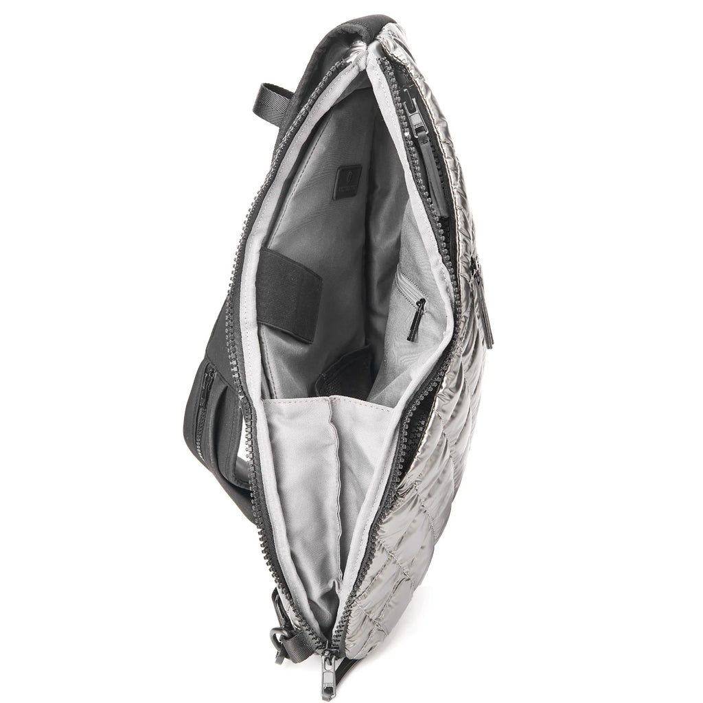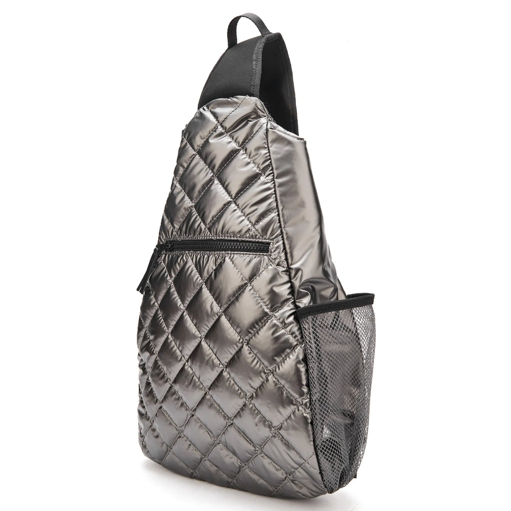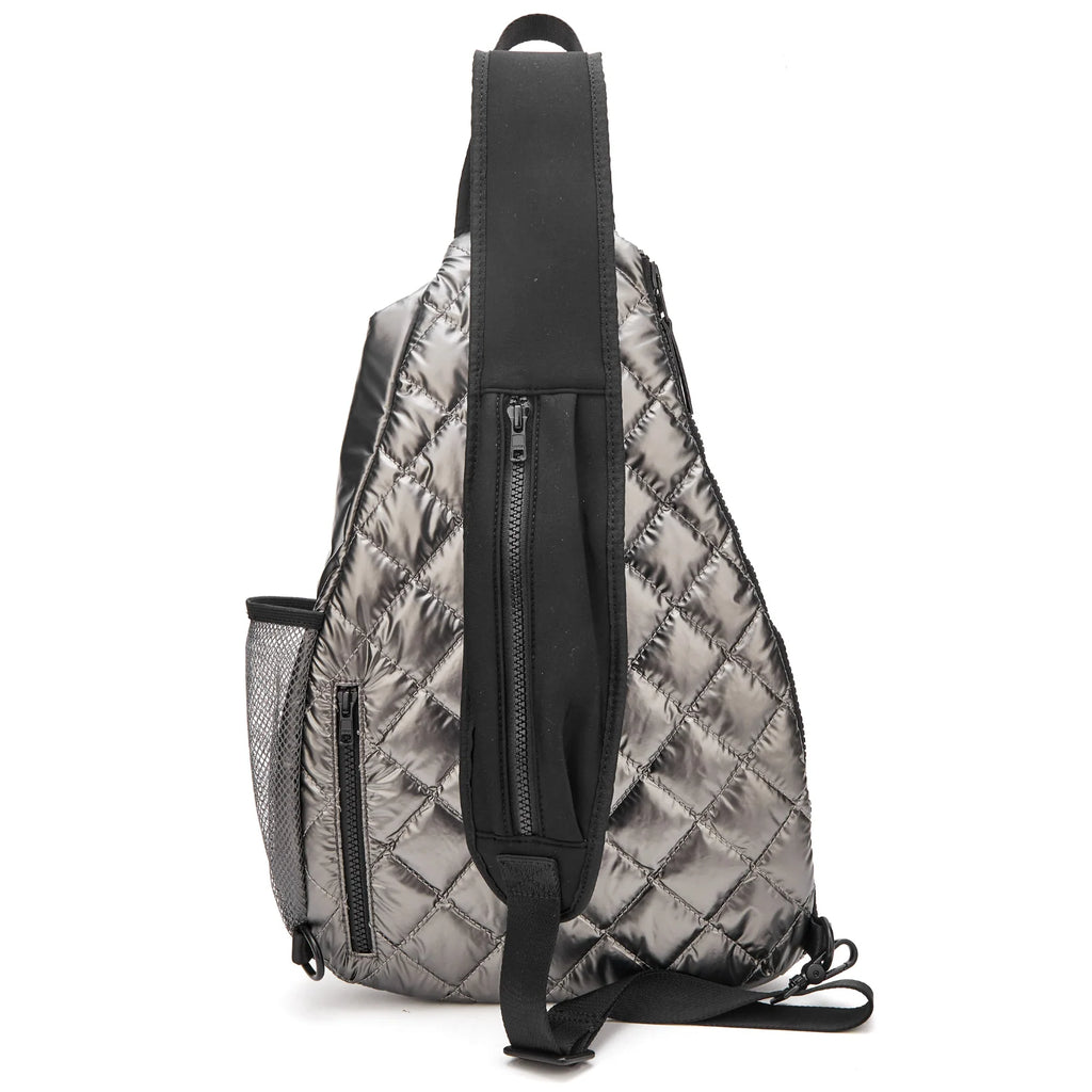 Elegant and functional, the fashionable Veranda Sling Backpack features multiple hidden exterior pockets, an adjustable padded crossbody strap with zip pocket, and a handy exterior water bottle holder. This bag was built to support your active lifestyle with elegance, style and utility.
