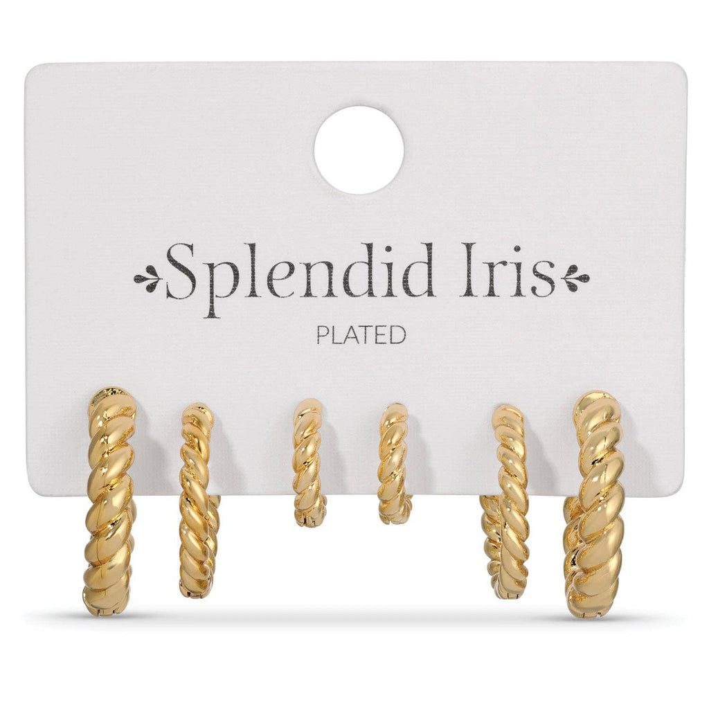Get the perfect combo of trending yet understated with our Twisted Huggies set. Includes 3 twisted huggies in 3 sizes. Upgrade your earring game now! Set/3 Huggies 18k Plated Gold or Rhodium Brass Base