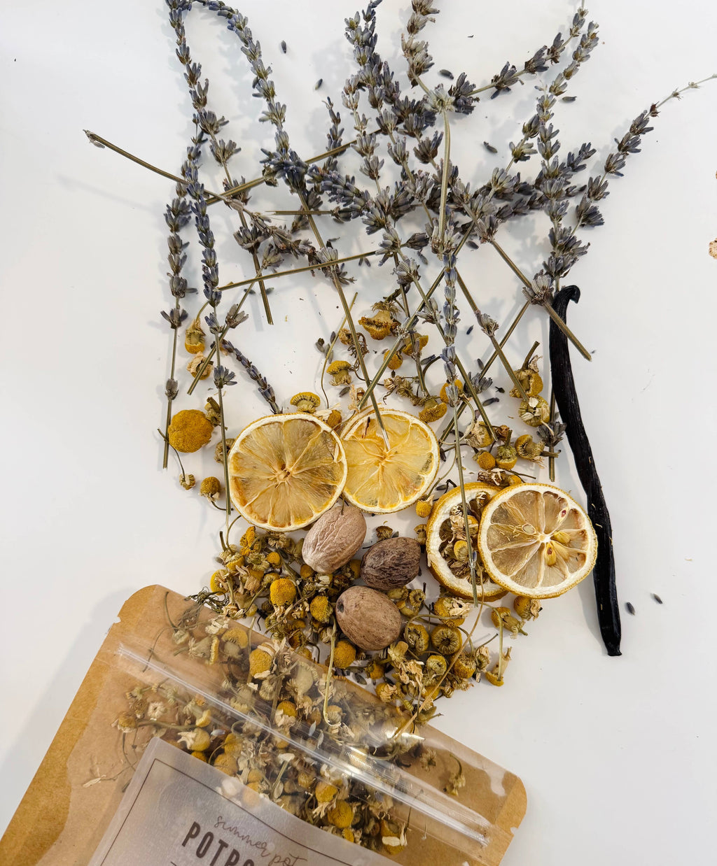Ingredients: Lavender, chamomile flowers, lemons, cardamom, nutmeg + vanilla bean.